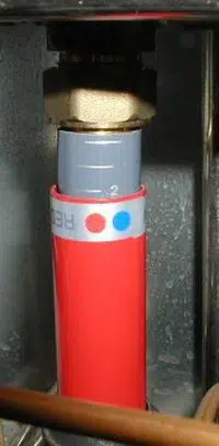 Ved 2 strengs radiatoranlæg skal ventilen normalt ikke stå over mærket 2 der er markeret på den grå skala. I meget kolde perioder kan det være nødvendigt at hæve indstillingen til ca. 2,5, således at fremløbstemperaturen til radiatorerne bliver ca. 60 - 65 grader, denne temperatur kan aflæses på termometeret under din unit, termometeret er markeret med en rød radiator.